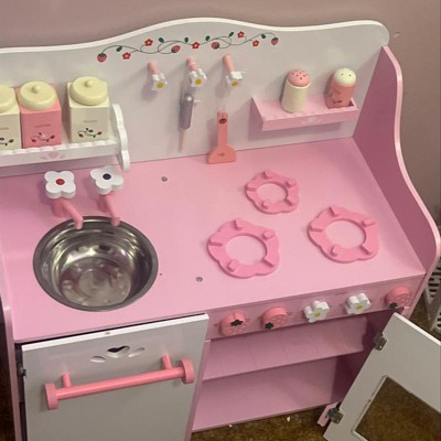Costway Kids Wooden Play Set Kitchen Toy Strawberry Pretend Cooking Playset Toddler