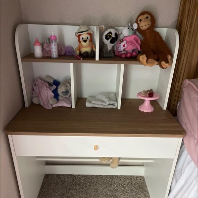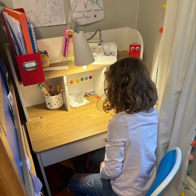 Our 7 year old loves this desk. She loves the compartments and the drawer. It fit well in our small room. The height of the desk may need to be raised up as she gets a little older, but we are happy with it at this age.
