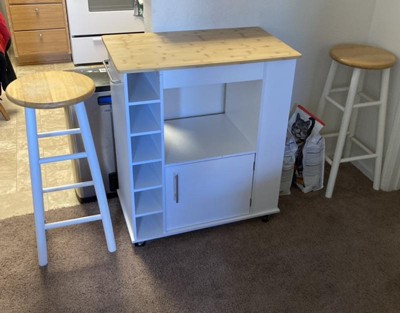 Costway Kitchen Island with Storage Rolling Kitchen Cart with Towel Rack Storage Cart on Wheels w/Bamboo Top 6-Bottle Wine Rack Spice Rack White