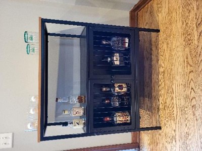 I am obsessed with this cabinet, it is the perfect addition to my coffee, tea and other mini bars! It matches the floating gold shelves and the brick wall behind it perfectly. The sliding door design is great and doesn't get in the way at all. Overall beautiful and practical!