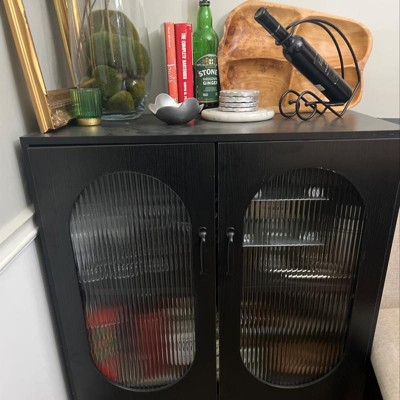 - Unique & Eye-catching Appearance: Different from ordinary clear glasses, our tempered glass features corrugated design with dim light transmission, which endows the cabinet a sense of hazy beauty. In addition, the color blocking of black and rustic brown adds industrial and chic beauty.