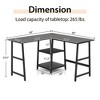 Built-in power strip comes with 2 AC outlets (125V/12A) & 2 USB ports (5V/2A) Supports diverse charging for your phones & computers 6.5 ft/2 m power cord for easy connection to the power supply 48” x 48”/120 x 120 cm L shaped desk for free placement in the right or left corner, while saving space Allow to remove the middle shelf for a large host stand Open shelves as a 2-tier shelf for books or as a host stand for working Reinforced metal frame offers strong support & a longer lifespan Burr-free tabletop is smooth & easy to clean Adjustable foot pads keep the whole well-balanced ETL certification for safe using