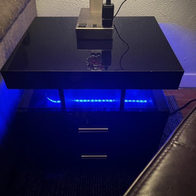 I really love the tables they are beautiful but there’s a few issues that had me going back and forth between 3 stars and 4 stars. The remotes do not have batteries, they are the flat round batteries), so make sure you get them before you get the tables. I don’t like the lighting, it looks cheap, sticks underneath the top the table, I don’t know how long it will last stuck there and the wiring wraps around the outside of the table to the back and through the hole so you can plug it in and if you take a close look you can see wiring under the bottom drawer and then around the back, not good. (See pics) I had both tables almost completely put together when I noticed a gash in the front of the drawer, Asked to either send me another drawer front or partial refund for the damage but the only option was to return. I can’t put back in boxes, they said I can bring them back to Target but they are big, pretty heavy and probably won’t fit in my car so I’m stuck with that. I made sure to put it on the bottom drawer on the bottom of the drawer and was able to use a magic marker to hide it as much as possible so yea not real happy. Watch the directions, couple places seemed backwards to me and the other person helping me. Overall I love the tables, they are beautiful, heavy and sturdy tables but will probably take the lighting completely out.