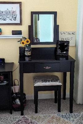 Costway Makeup Desk Vanity Dressing Table Square Stool 1 Large Black