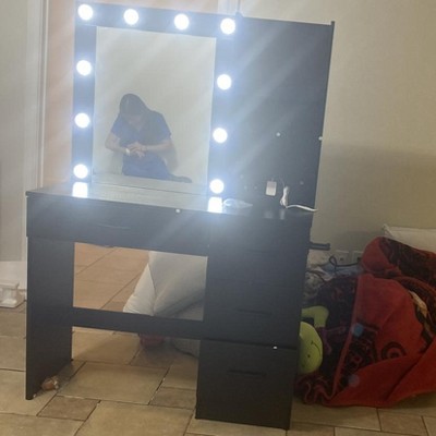 It’s really cute , and even though there are a lot of screws I enjoyed the time I took into building it, the vanity itself is small but I think it’s perfect for small spaces or just a cute touch to the room , instead of dealing with the huge vanity’s , the lights are a bit lose but some tape to hold is fine , I am happy with this vanity .
