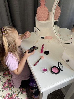 Costway Makeup Vanity Table Drawers Oval Dressing Table Kids Gift