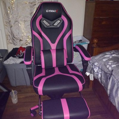There are really great things and a couple not so great things about this chair I love how it reclines so I can take some pressure off my back while waiting for fellow gamers to join the party. I love that the seat isn't too long because I am short and it allows me to sit back and get the back support I need. I love that its easy to move around and I love that if I spill something on it I can easily just wipe it off with a rag and its back to normal. I wish however that the massage pillow had a longer cord and and a strap so I could hold it in place so it don't have to be replaced to the right position every time I move. and I WISH the foot rest was a little longer so it actually reached closer to me feet instead of half way down my leg. but all in all I am pleased with it and considering buying on for hubby