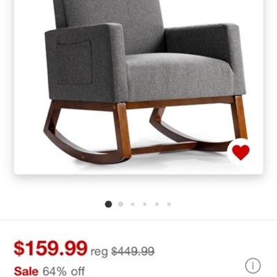 Costway Mid Century Retro Fabric Upholstered Rocking Chair Nursery Armchair Gray