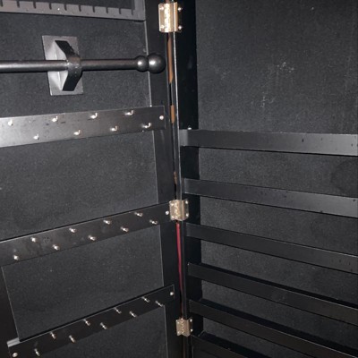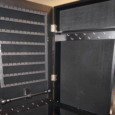 Our jewelry cabinet contains the best secret a woman dreams of! Get all your jewelry out and untangled your necklaces for your very last time before organizing them in this gorgeous mirror. Its inside is made of a protective gray fabric lining to prevent your jewelry from getting scratched and it has room for your earrings, necklaces, rings and more. Moreover, you could also keep your makeup inside, making your everyday beauty routine of getting ready easier and faster! It features lockable function, the equipped lock with keys safely keeps your valuables stored. And last but not least:the mirror is adjustable. It has 3 angle tilting positions, choose your favorite angle for a better view. Don't hesitate to add it to your cart!