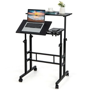 Costway Mobile Stand up Desk Adjustable Computer Desk Tilting Workstation