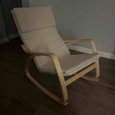 I have been using this rocking chair for several months now and I am so impressed with the quality and comfort. The wooden frame is well-crafted and sturdy, and the cushion is thick and supportive. The rocking motion is smooth and relaxing, making it the perfect spot to unwind after a long day. I highly recommend this chair to anyone in the market for a comfortable and stylish rocking chair