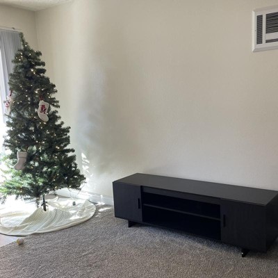Sturdy Wooden Construction: The TV stand is made of high grade engineered wood, wear-resistance, and durable for long-time use. It also has a strong bearing capacity up to 180 lbs, and the vast majority of flat TV on the markets and home furnishings can be put on it.