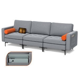 Costway Modular 3-Seat Sofa Couch with Socket USB Ports & Side Storage Pocket Ash Grey