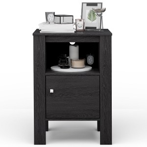 Costway Nightstand Compact Side End Sofa Table with Open Shelf & Cabinet Dark Grey Oak/Walnut