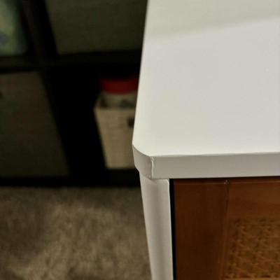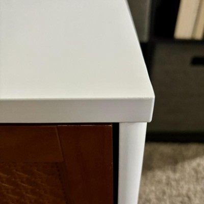 I really wanted to love this item, but it came with scratches that were in places that would be visible. Besides that it looks fine if you don’t look too closely. Yes it is chic but it also looks a little cheap. And my bad, didn’t actually take a measuring tape out to visually imagine the dimensions in the room but they’re kinda small. I can’t see how a lamp and some night stand items (jewelry holder or baby monitor) would fit.