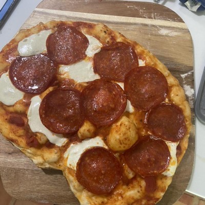 Each of our family of four has their own ideas of what should be on a pizza. This oven makes smaller pizzas, so everyone can have what they want. When it\'s 95°F (35°C) outside, the last thing you want to do is heat up your kitchen, after all. I\'ve learned a few useful tips in my first few uses. First off, the peel comes with a plastic coating on both sides. Get that off before you try to use it! Next, you need a table where you can spread your dough (a kneading board is useful here) and keep your toppings and cold beverage. If you have a grill (open but not fired up), it can also be useful as extra shelving while you\'re cooking. If someone wants ground beef or sausage, use the grill\'s side burner. Generously coat both the pizza stone, the peel, and your kneading board with cornmeal before getting started. You can use the peel to scrape burned cornmeal off the stone after two or three pizzas. Lay the flattened dough directly on the peel, add toppings, and it\'s off to the oven! There\'s not a lot of room in the fire chamber for thick sticks of wood. Make the largest sticks 1 to 1.5 inches (25-40mm) thick. Check the fire after every pizza and add more wood if needed. If you let the fire get too low, the oven temperature will drop quickly. The shelf at the bottom holds enough wood to make six or more pizzas. Try to keep the oven temperature around 450°F (230°C) as much as possible. For me, I can get close when the fire chamber vent is cracked open and the flue vent is about halfway open. Check the pizza after two minutes. At this point, it should only need one or two more minutes to finish. Look for browning around the edges of the crust, and melted cheese in the middle. When done, use the peel to take the pizza out and lay it on a dinner plate for cutting and serving. If the fire gets too hot, use a squirt bottle with water to spray the fire and cool things down. At 500°F (260°C), you run the risk of scorching your pizza crust… ask me how I know. You can avoid scorching at that temp, but you need to keep a really close eye on things. It might take two or three sessions to get the hang of it. Baking with wood is different from a gas or electric oven, because you have to keep track of the fuel and adjust the draft as needed. I\'m looking forward to trying to bake rolls or roast meat some time. Finally, take the peel inside with you. When you\'re not cooking outside, you can still use it to take frozen or homemade pizzas out when they\'re done.