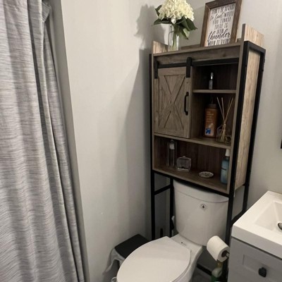 Costway Over-The-Toilet Storage Cabinet Bathroom Organizer w/ Sliding Barn Door Rustic Brown/Espresso/Grey