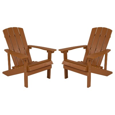 Costway Patio HIPS Adirondack Chair with Cup Holder Weather Resistant Outdoor 380 LBS Teak