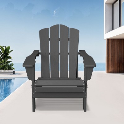 Costway Patio HIPS Adirondack Chair with Cup Holder Weather Resistant Outdoor 380LBS Yellow