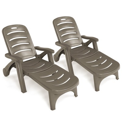 Costway Patio Lounge Chair Chaise Adjust Recliner Weather Resistant Wheel