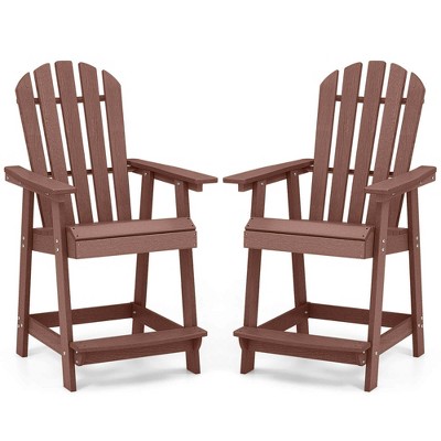 Costway Patio Rattan Barstools Set of 2 Outdoor Wicker Bar Height Chairs with Footrest