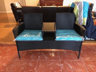 Costway Patio Rattan Conversation Set Seat Sofa Cushioned Loveseat Chairs Turquoise