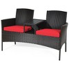 Costway Patio Rattan Conversation Set Loveseat Sofa Cushioned Coffee Table Turquois\Red
