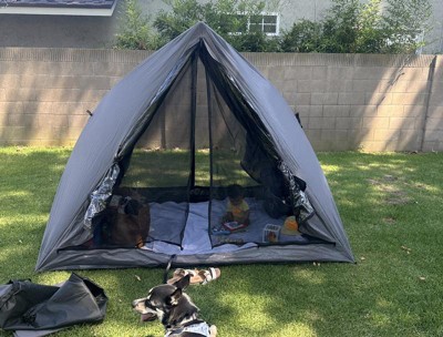 The double-layer mesh screen front and back doors provide privacy and easy access