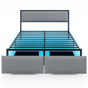 Costway Queen Size Bed Frame w/ 2 Storage Drawers LED Lights Slats Support Modern