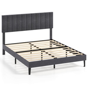 Costway Twin/Full/Queen Size Bed Frame with Height Adjustable Vertical Channel Headboard, Noise Free Gray/Beige