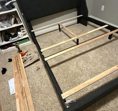 Missing the slats. Got my bed all taken out of my room brought the box in here took everything to find zero slats.