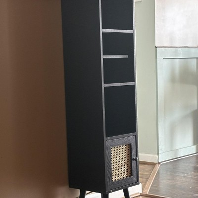 Costway Rattan Storage Cabinet Freestanding Slim Organizer Wood Display Rack Living Room Black/White/Natural