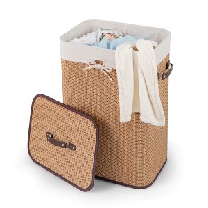 Costway Rectangle Bamboo Hamper Laundry Basket Washing Cloth Bin Bag Lid Black/Natural/Brown/Bamboo