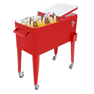 Costway Red Outdoor Patio 80 Quart Cooler Cart Ice Beer Beverage Chest Party Portable