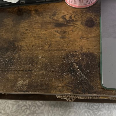 This item is very cheap!! Do not buy this even if they give it to you for 10 dollars!! I bought this and I have had for only six months. Now I have to throw this out and buy another one. The table won’t stay together it breaks apart every time Lift it up. My son put a bit of masking tape on it playing around and when I took the tap off it also remove all the paint. It gets scratches from moving my laptop on it and when I clean it with a wipe it develops some sort of little bumps and then later the paint comes off. Mind you I use no perfume and gentle wipes that I use to clean my toddler. I’m so disappointed of this item that I wish I never bought it.