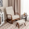 Costway Rocking Chair with Ottoman Upholstered Fabric Glider Rocker Solid Wood Beige/Grey