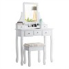 Costway Rotatable Mirror Vanity Set Makeup Dressing Table and Stool w/ 5 Drawers