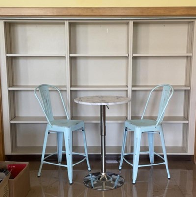 This elegant faux marble table can be used as a end table, 2 person dining table and standing workstation. The convenient swiveling design allows you to enjoy a 360-degree rolling while chatting or having dinner with your family and friends. And you can adjust the height from 28 inch to 36 inch This pub bar table is a great match for kitchen, pub, office, exhibition, coffee house, dining room, living room, rest area, restaurant. By the way, the smooth PVC tabletop make it easy to clean and maintain.