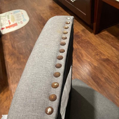 The nail heads along the front of the chair are rusted. I really wanted to love these I’ve been searching for a while. Way to expensive for rust..otherwise they were perfect for my new kitchen. Will need to return and continue the search :(