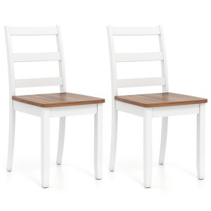 Costway Set of 2 Dining Chairs Ladder Back Armless Side Chair w/ Solid Rubber Wood Legs