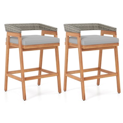Costway Set of 2 Outdoor Bar Chair Folding Bar Height Stool with Metal Frame Coffee Black