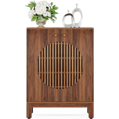 Costway Set of 2 Rattan Sideboard Cabinet Farmhouse Buffet Storage Cabinet with Sliding Door 2 Adjustable Shelves