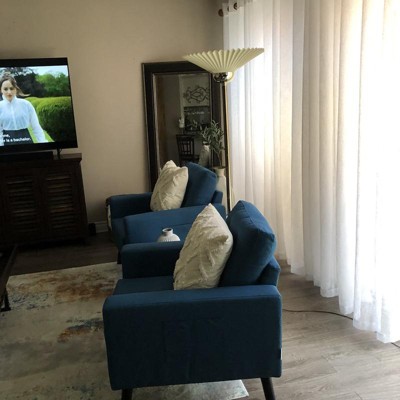 Love these accent chairs.. I got them on sale so even better.. Very easy to assemble.. very comfortable.. the blue color in the pic is not navy blue.. which I like! It is exact color as in the pic..