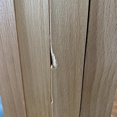 One of the legs was split right in half out of the box. Returning.
