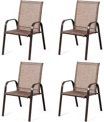 Costway Set of 4 Patio Dining Chairs Stackable Armrest Space Saving Garden Brown/Grey