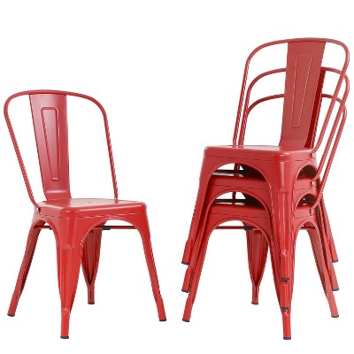 Costway Set of 4 Modern Metal Dining Side Chair Wood Seat Stackable Bistro Cafe