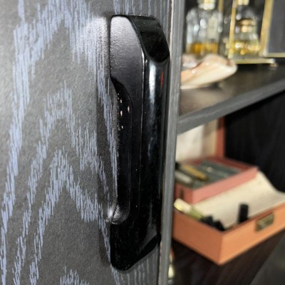 Very cute cabinet and super glad I bought it! Sturdy, easy to assemble, took me maybe 30-45 minutes. My only gripe is that the handles are poor quality, but I intended to replace them anyways. The screw holes for the handles are 3 7/8 inches apart for anyone who plans to replace them. It also comes with stickers that match the faux wood grain to hide the screws. Pro tips: The magnet closure *is* in fact two pieces, you just have to pull them apart with more force than you might think when you take them out of the bag.