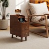 Costway Solid Wood End Table w/ Pull-out Tray & 2 Storage Drawers Cable Management