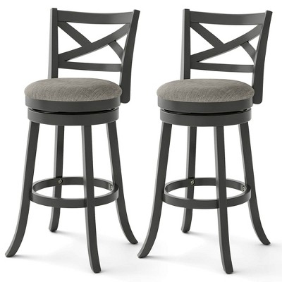 Costway Swivel Bar Stools Set of 2/4 Counter Height Chairs with Hollow Back Soft-padded Seat Grey