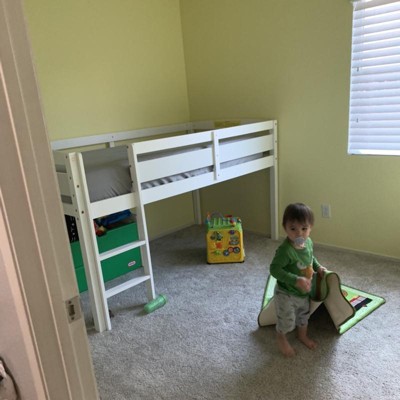 This is an unmissable loft bed for your family! High-quality solid wood and sturdy PB ensure the durability and solidity of bed. 4 wooden legs and thick slats make the bed can hold up to 353 lbs; both kids and adults can use it. There is a floor space under the bed, which can be used as storing toys or building a fort. Not only that, we have a lot of humanized designs to ensure the safety of user as much as possible. 15.5 inch high guardrails protect kids from falling from the bed; low height bed is safer than other loft beds. Our loft bed comes with classic color can match well with your home.